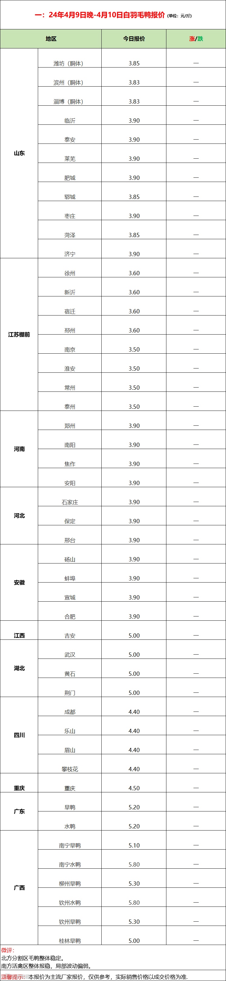 北方毛鸭报稳为主,屠宰以合同为主,对市场鸭支撑有限。南方活禽区报价弱稳,局部走弱。