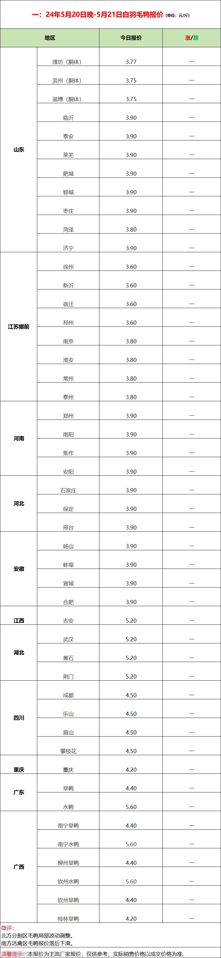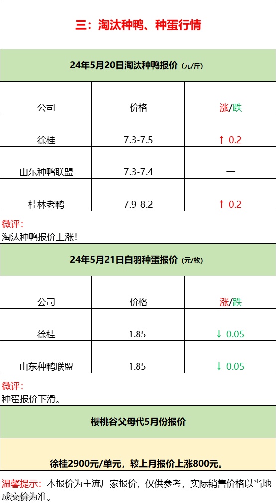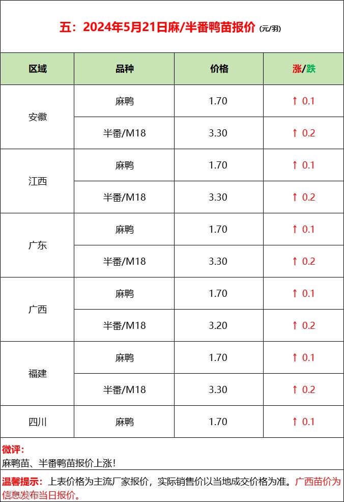 2024年5月21日水禽行情简报 益牧堂水禽信息