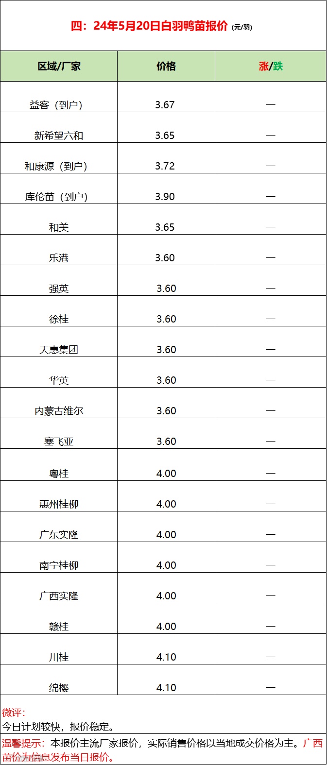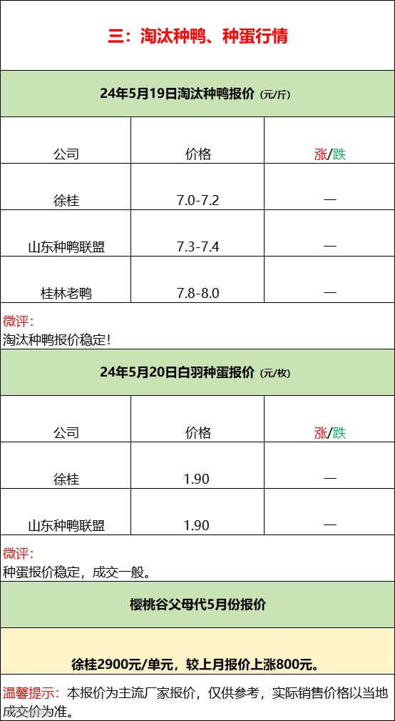 2024年5月20日水禽行情简报 益牧堂水禽信息