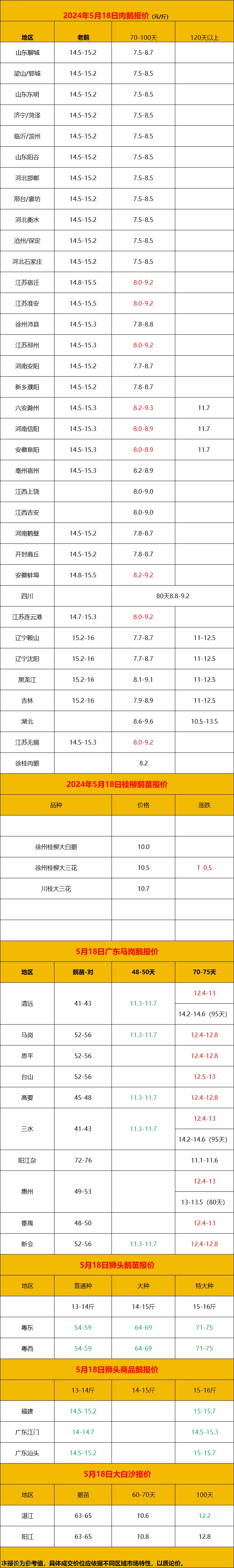 2024年5月18日各品种鹅苗价格