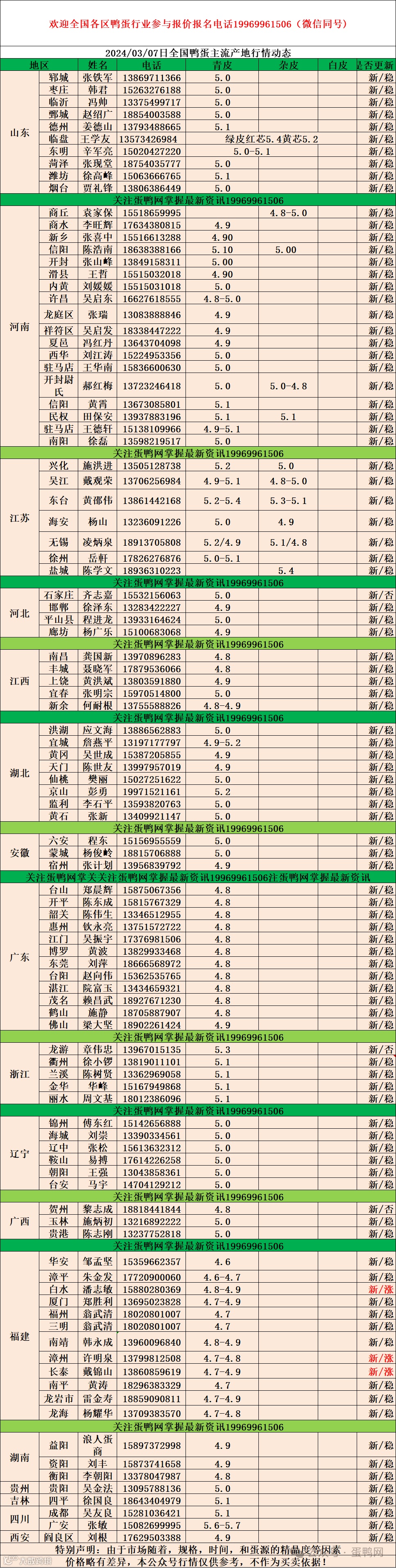 2024年3月7日商品鸭蛋报价