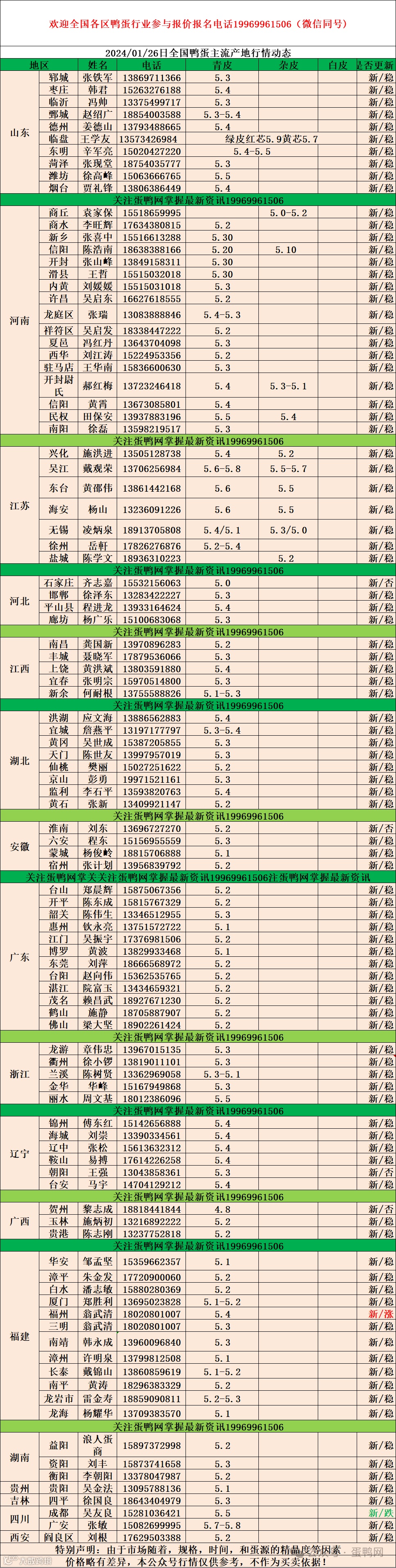 2024年1月26日商品鸭蛋报价