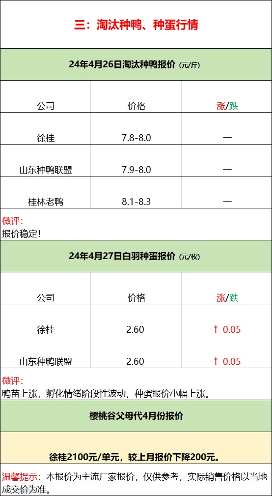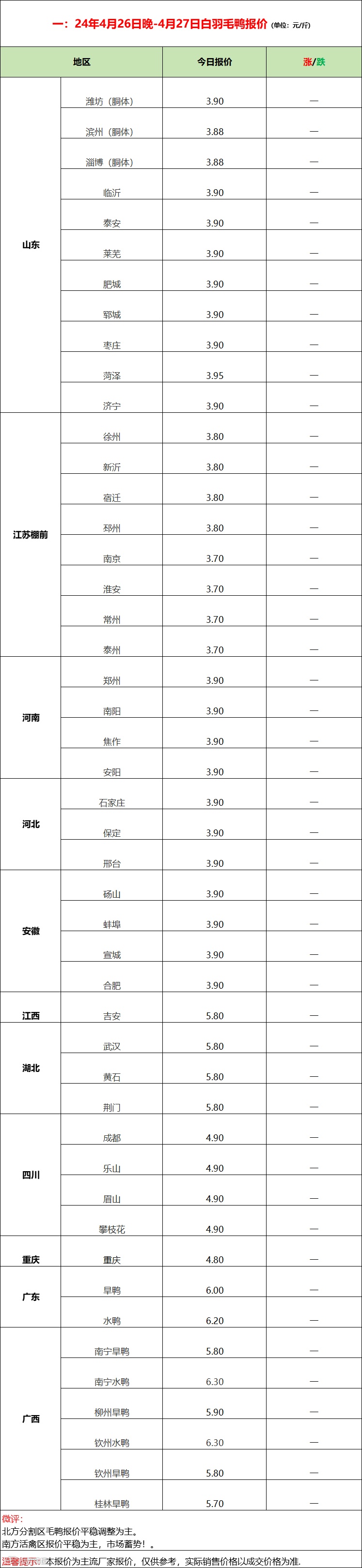 2024年4月27日水禽行情简报 益牧堂水禽信息