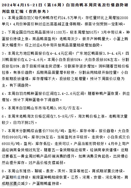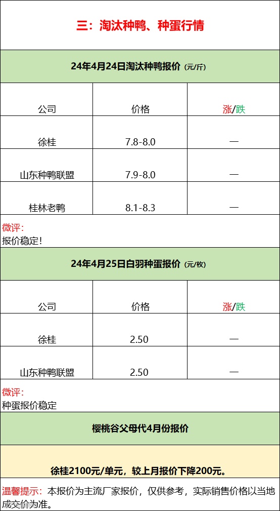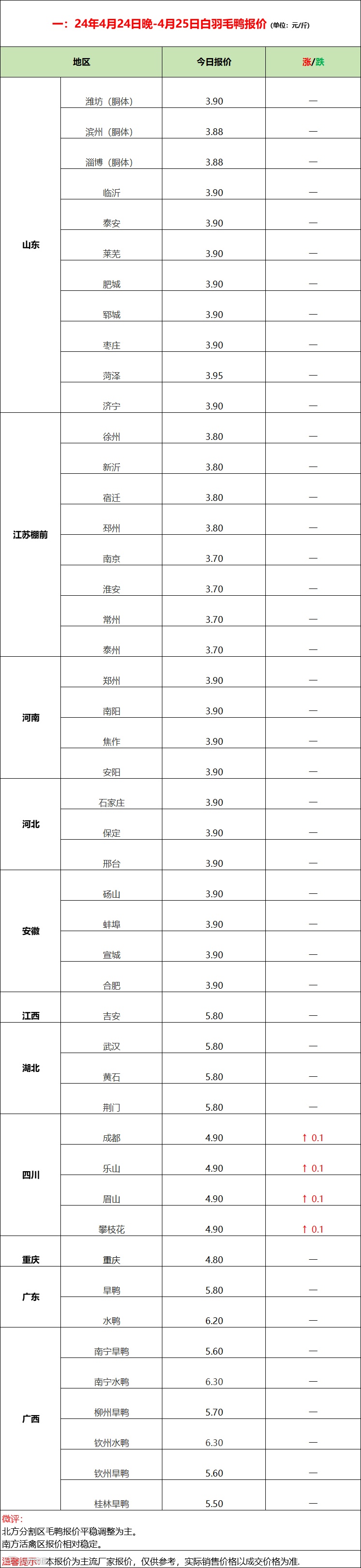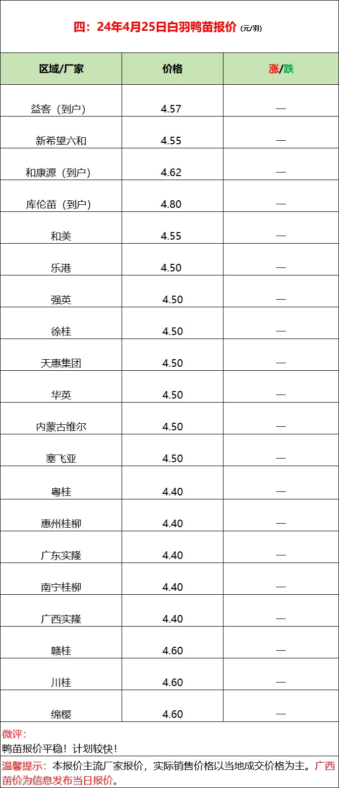 2024年4月25日水禽行情简报 益牧堂水禽信息