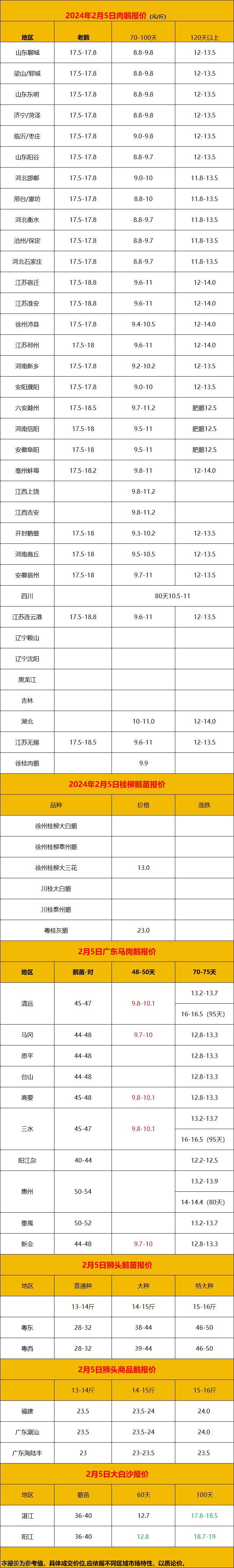 郓城鄄城:大三花-通蛋7.4-7.5 泰州-通蛋6.5