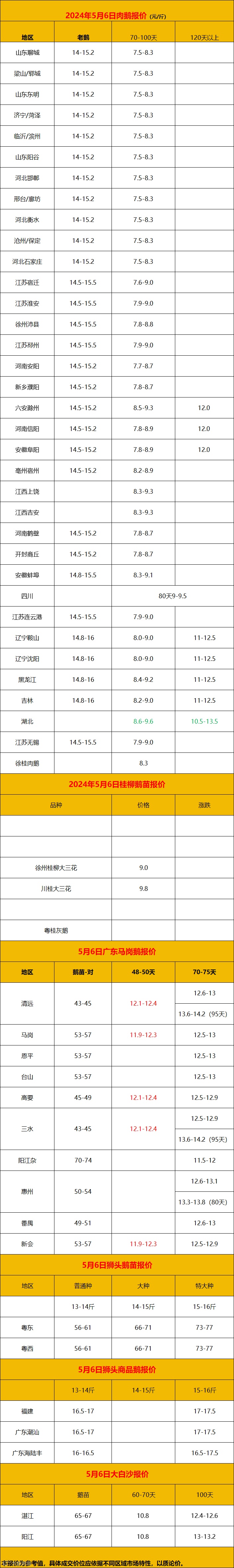 滑县内黄:大三花-通蛋6.5 大泰州-通蛋5.3