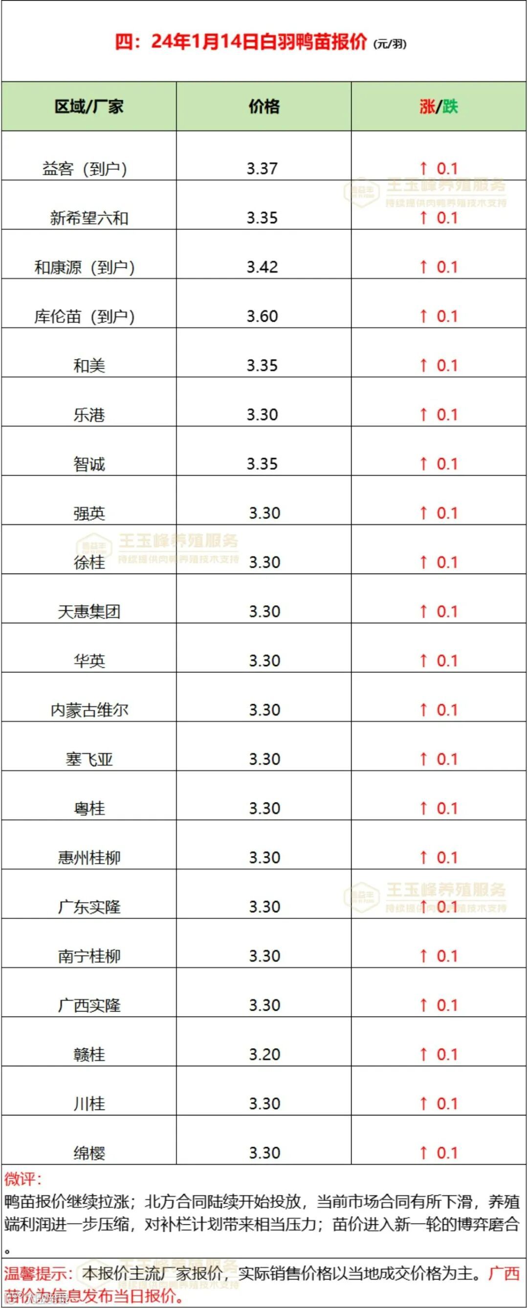 鸭苗报价继续拉升;北方合同区投放陆续开启,多数合同下调,养殖端空间进一步压缩,补栏压力上升,苗价进入新一轮博弈磨合中。