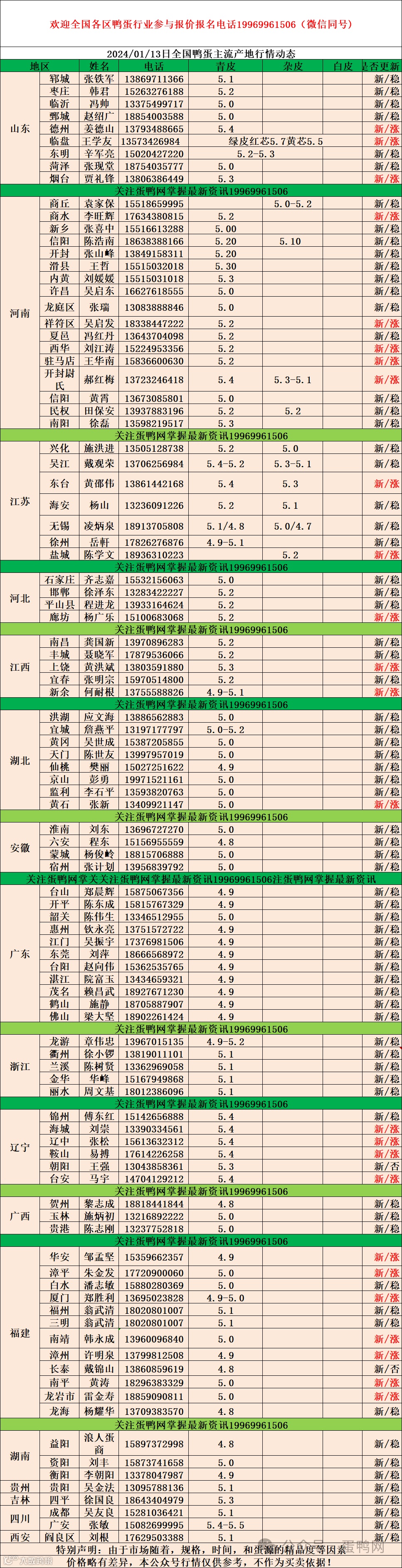 2024年1月13日商品鸭蛋报价