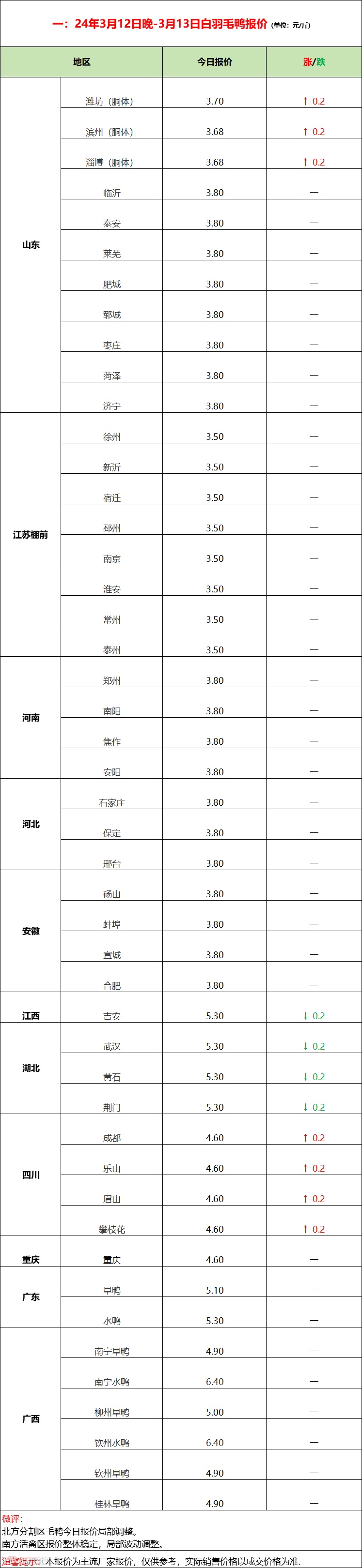 南方活禽区毛鸭报价整齐弱稳,局部零星下行。