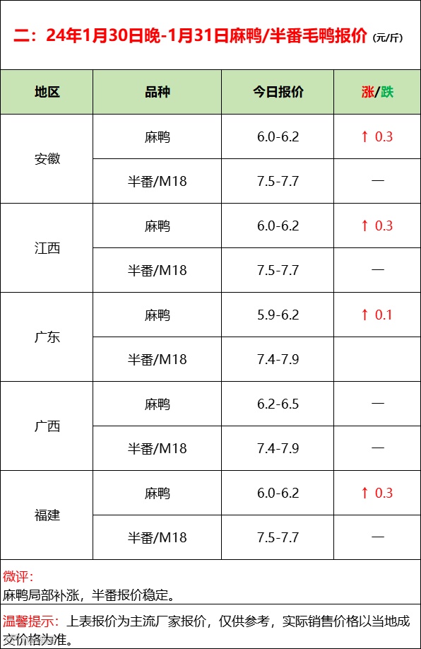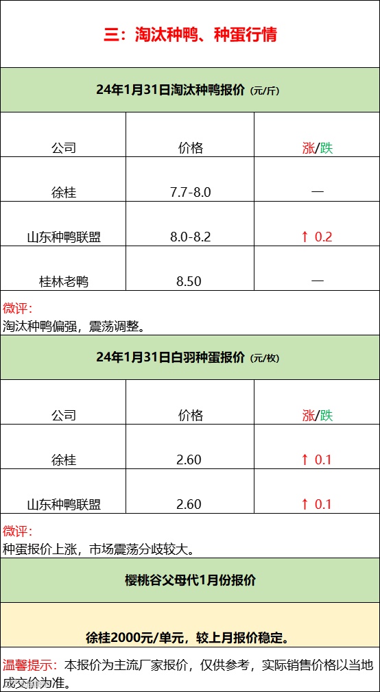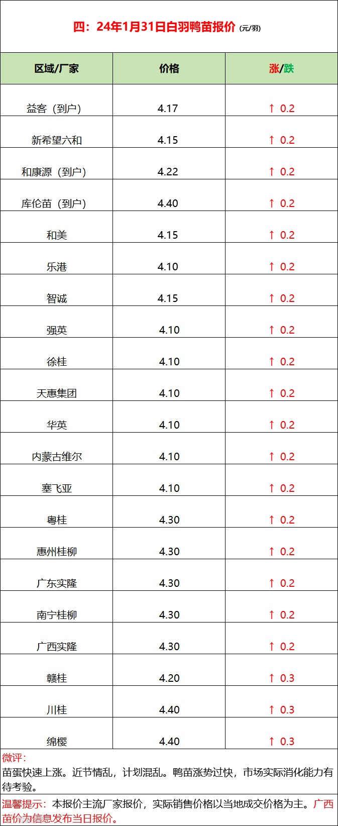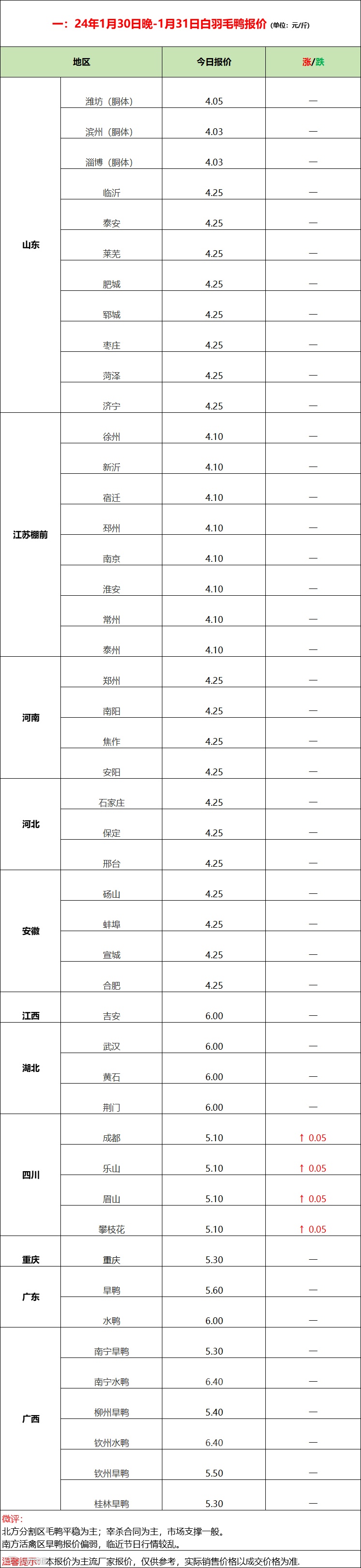 --2024年1月31日水禽行情简报 益牧堂水禽信息
