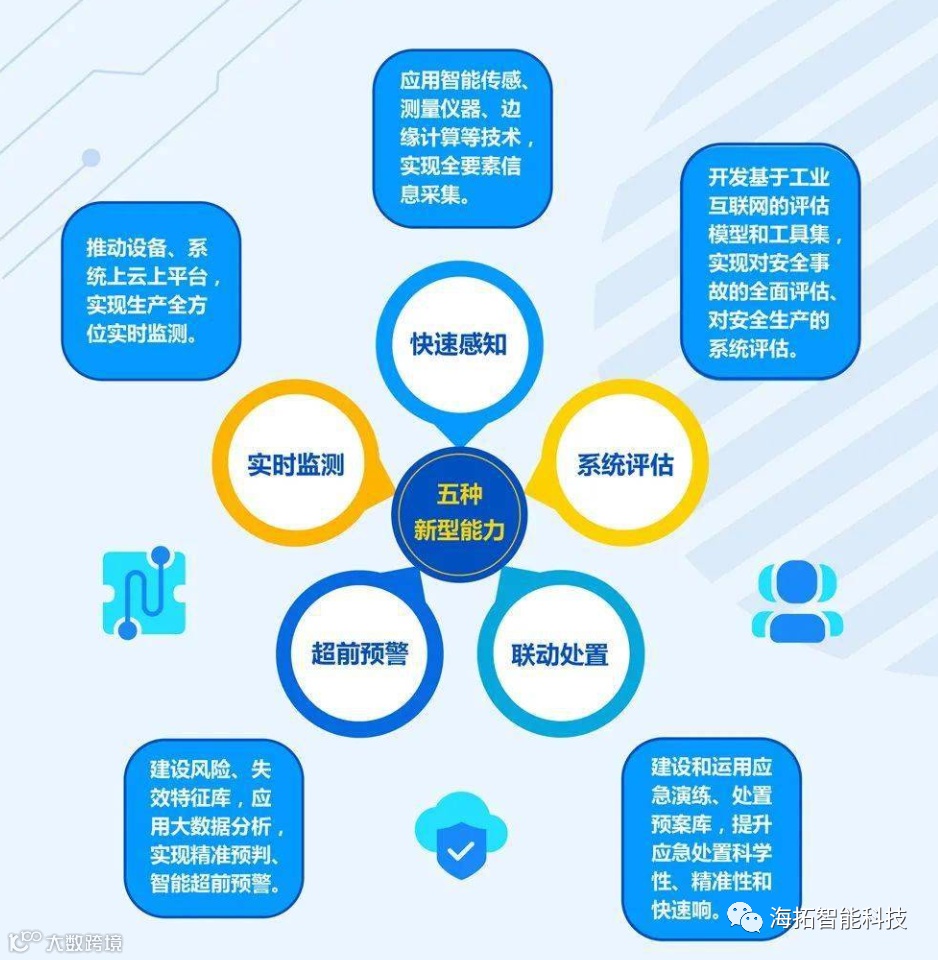 国家工业和信息化部、应急管理部近日印发《“工业互联网+安全生产”行动计划(2021-2023年)》,提出到2023年底,工业互联网与安全生产协同推进发展格局基本形成,工业企业本质安全水平明显增强。海拓智能作为积极响应号召,建成了基于工业互联网架构的安全生产监管平台,目前已经在快速感知、实时监测、超前预警、联动处置、系统评估等方面基本形成新型能力体系,初步建成了数字化管理、网络化协同、智能化管控等,形成较为完善的产业支撑和服务体系,实现更高质量、更有效率、更可持续、更为安全的发展模式。