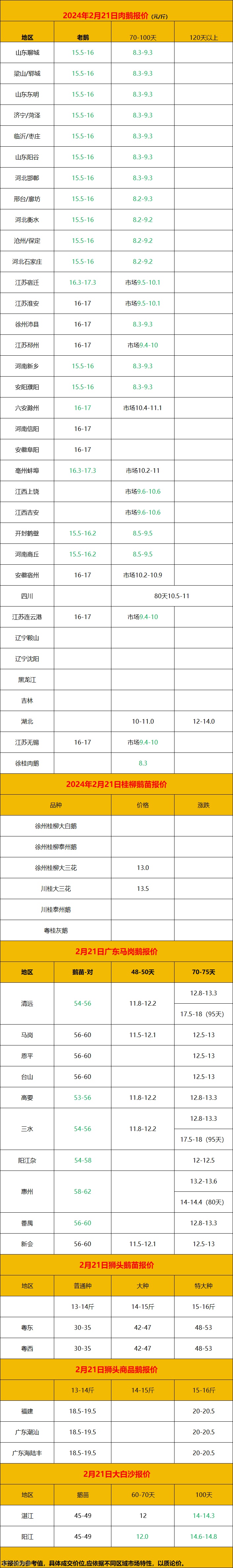 郓城鄄城:大三花-通蛋4.6-4.8 泰州-通蛋4.0