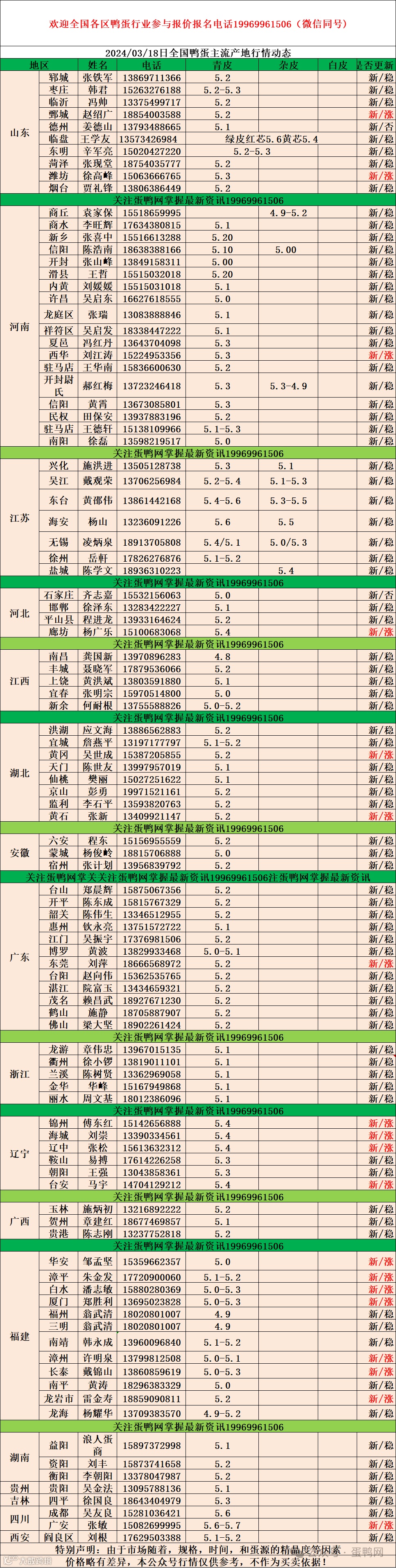 2024年3月18日商品鸭蛋报价