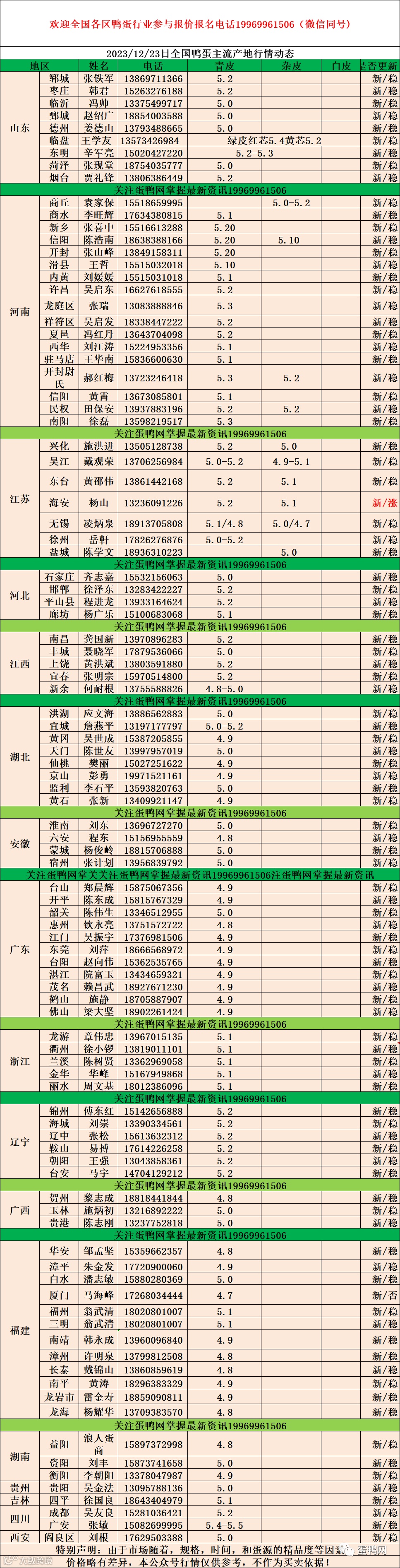 :活禽市场15.5元/斤左右。屠宰厂收购价13元/斤左右,淘汰鸭价格受毛色,体重,品种等影响的变化较快。