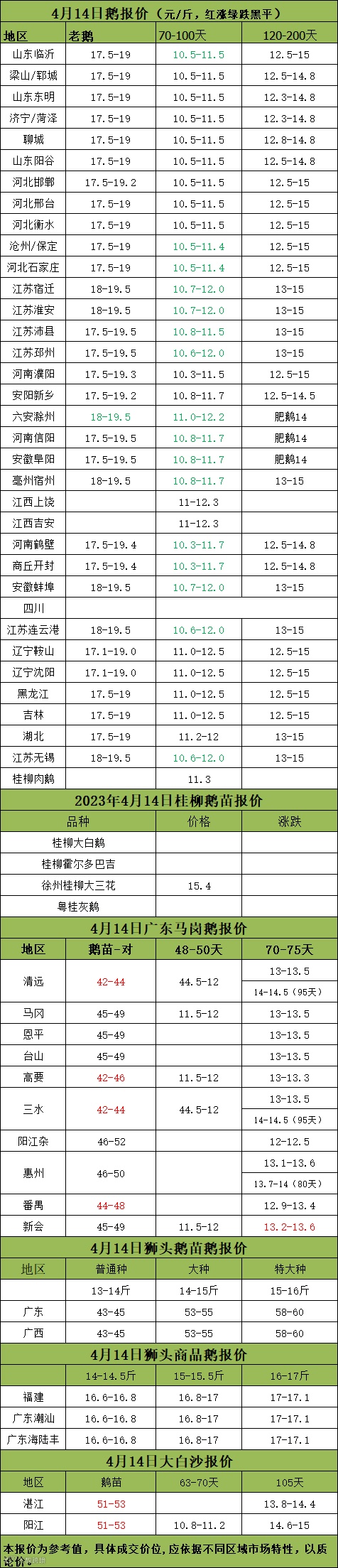 2023年4月14日鹅价快报 益牧堂水禽信息