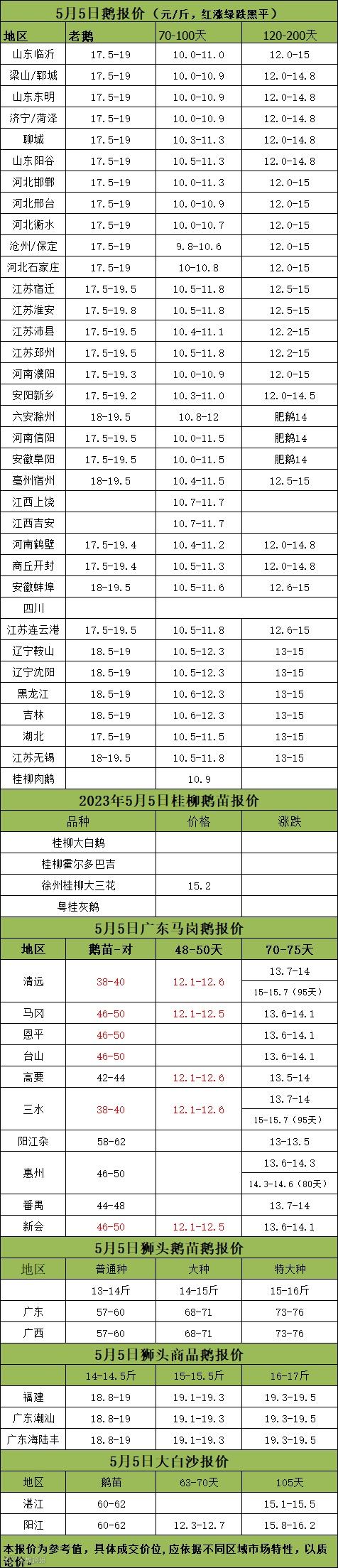 2023年5月05日鹅种蛋价格(元/枚)部分停报