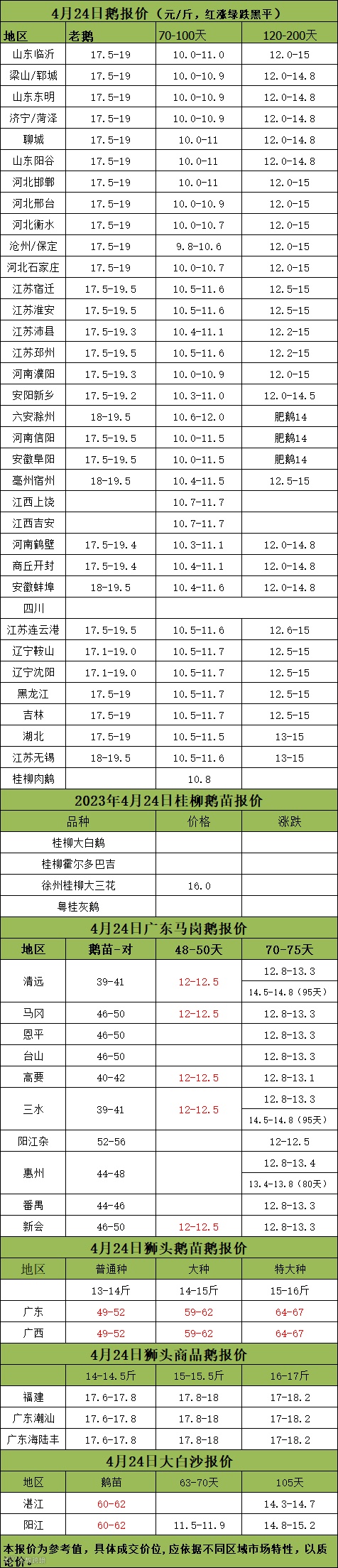 2023年4月24日各品种鹅苗价格