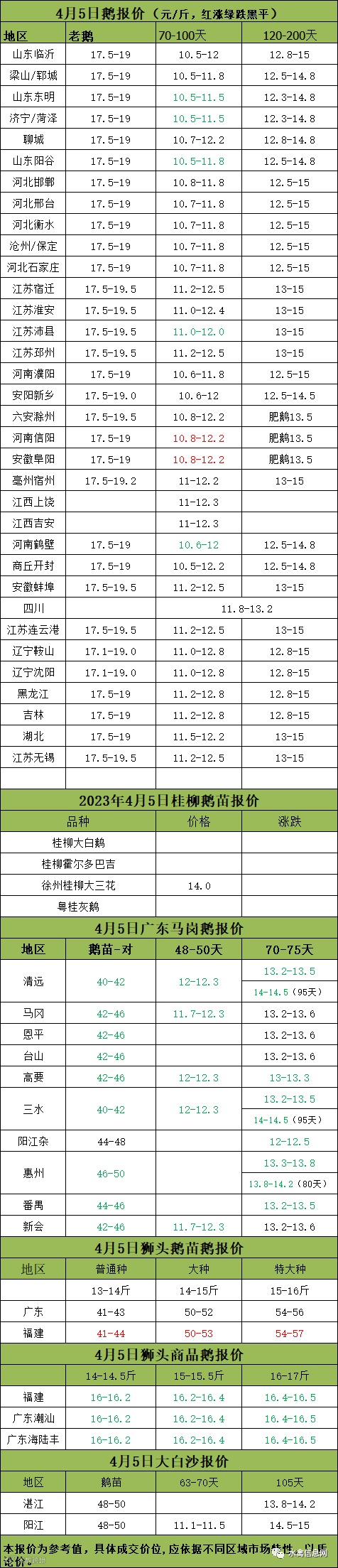 2023年4月05日鹅种蛋价格(元/枚)部分停报