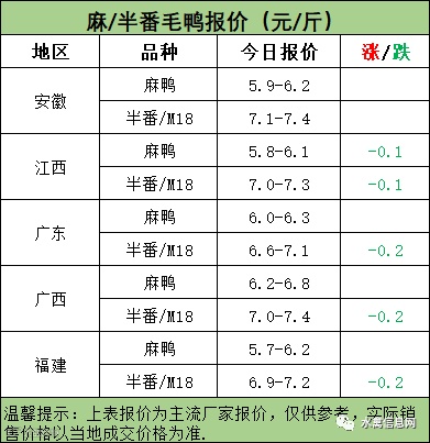 麻鸭苗报价平稳;半番鸭苗报价平稳。
