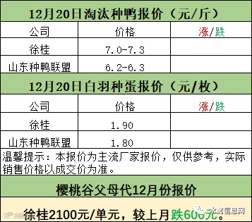 一、12月19日晚-12月20日白羽肉鸭报价;