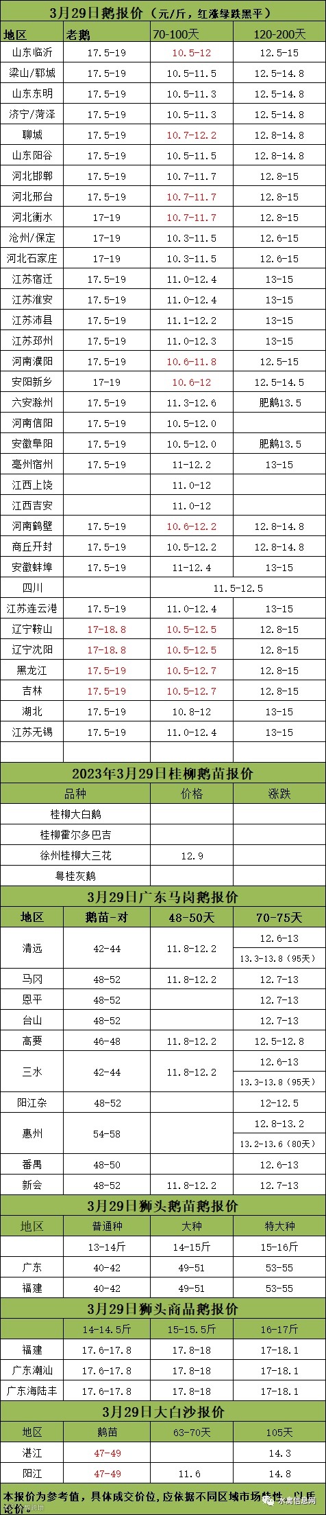 2023年3月29日鹅种蛋价格(元/枚)部分停报