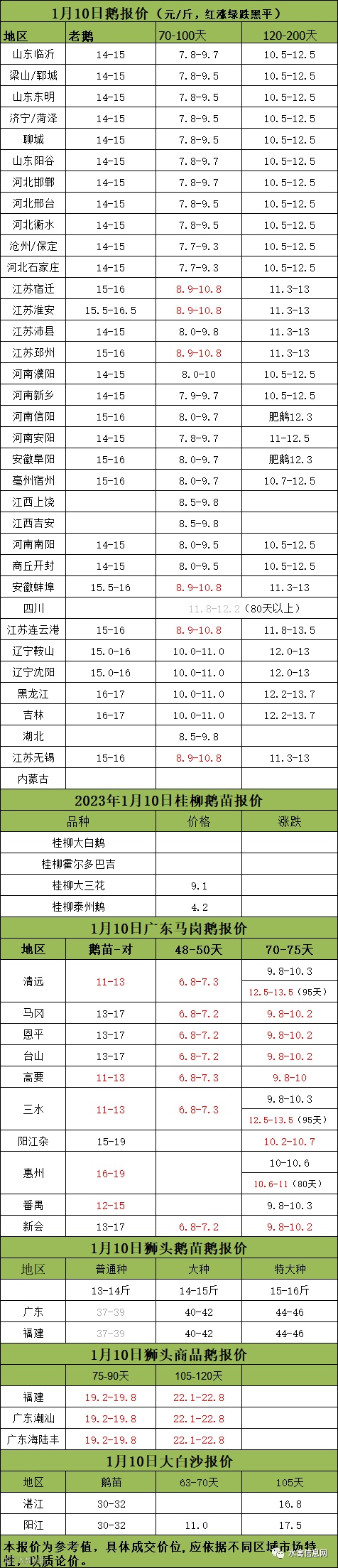 2023年1月10日各品种鹅苗价格