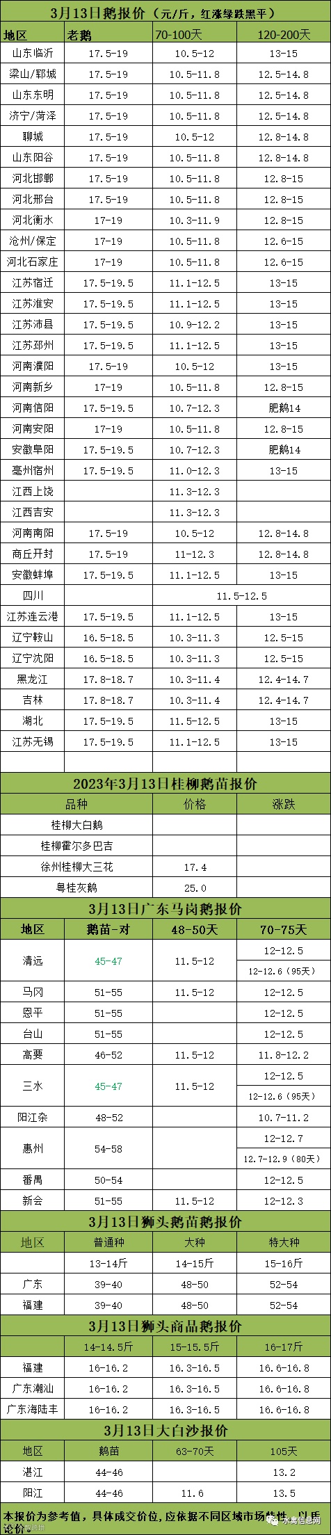 2023年3月13日鹅种蛋价格(元/枚)部分停报