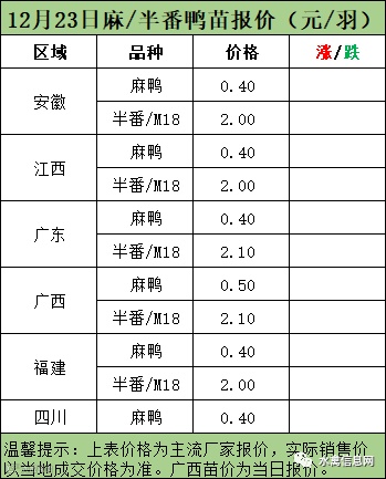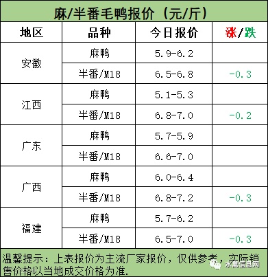 麻鸭苗报价弱稳;半番鸭苗报价弱稳。