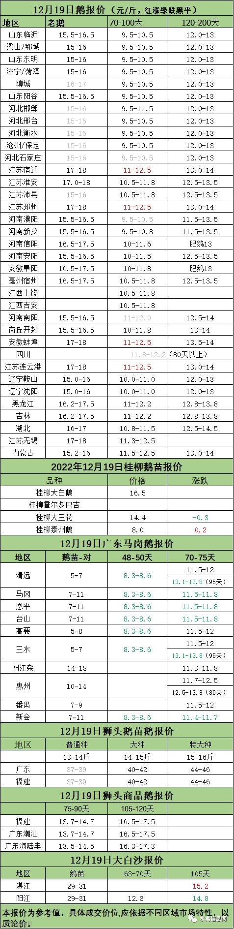 2022年12月19日鹅种蛋价格(元/枚)部分停报