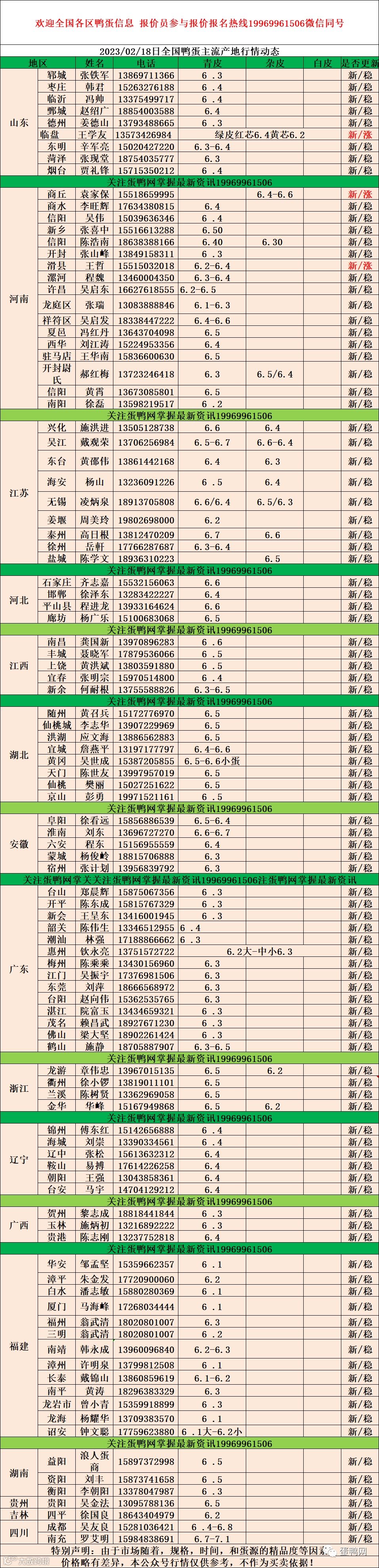 2023年2月18日鸭蛋报价