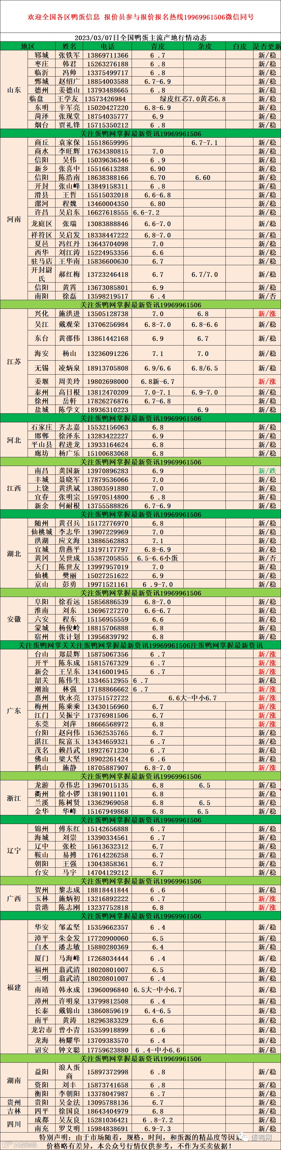 2023年3月7日鸭蛋报价