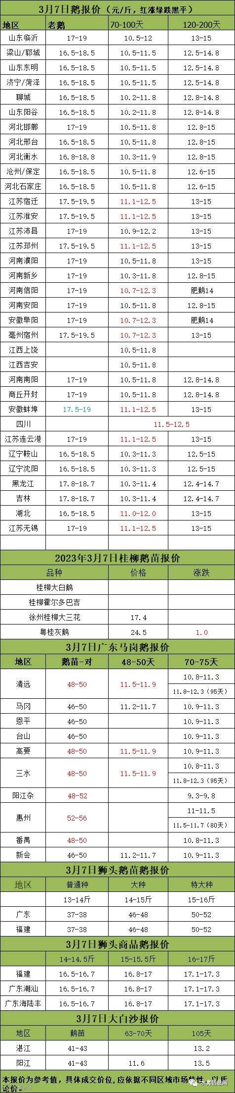 2023年3月07日鹅种蛋价格(元/枚)部分停报
