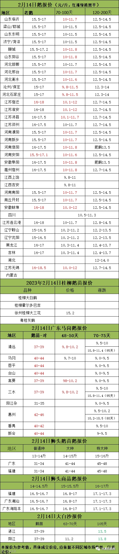 2023年2月14日各品种鹅苗价格