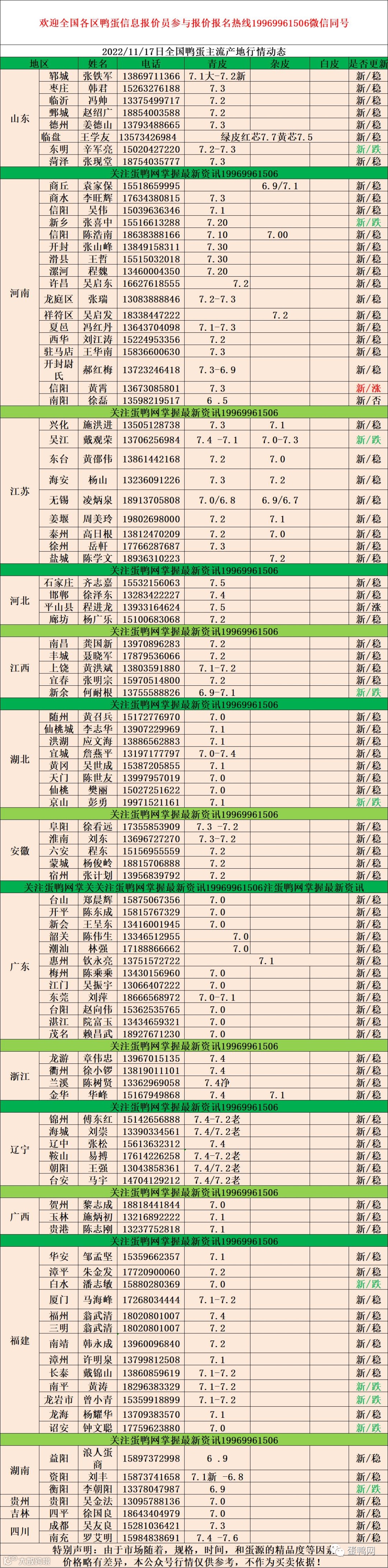 2022年11月17日:初产至10个头6.6元,10个头至9个头7元,9个头至8个7.2元,8个头至大蛋7.4元。