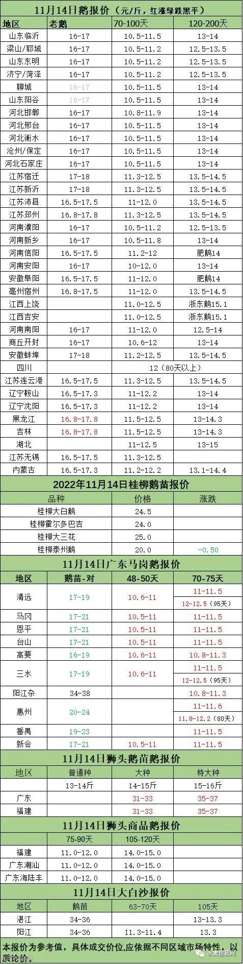 2022年11月13日各品种鹅苗价格