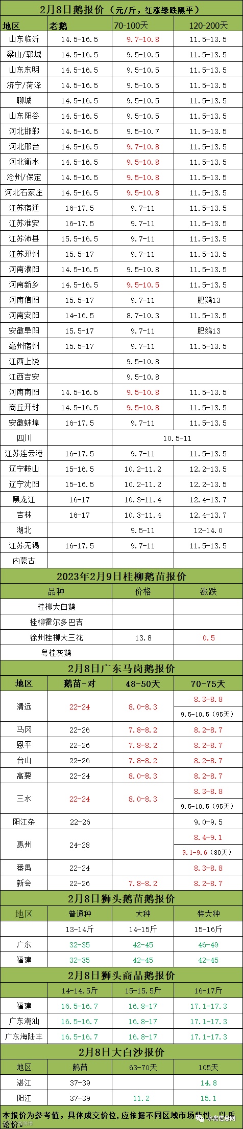 2023年2月08日鹅种蛋价格(元/枚)部分停报