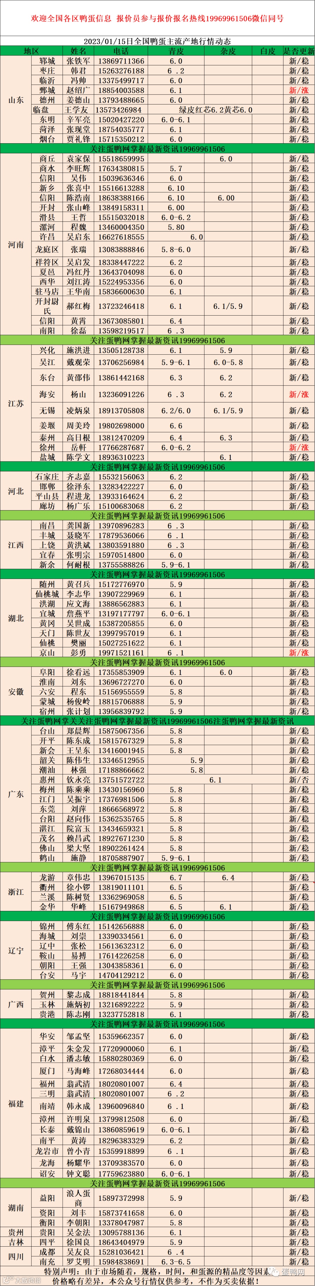 2023年1月15日:初产至10个头5.5元,10个头至9个头5.6元,9个头至8个头5.7元,8个头至7.5个头5.8,7.5个头至大蛋6.0元。