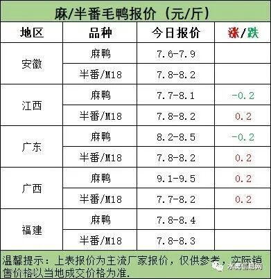 麻鸭苗报价稳定;半番鸭苗报价下滑。
