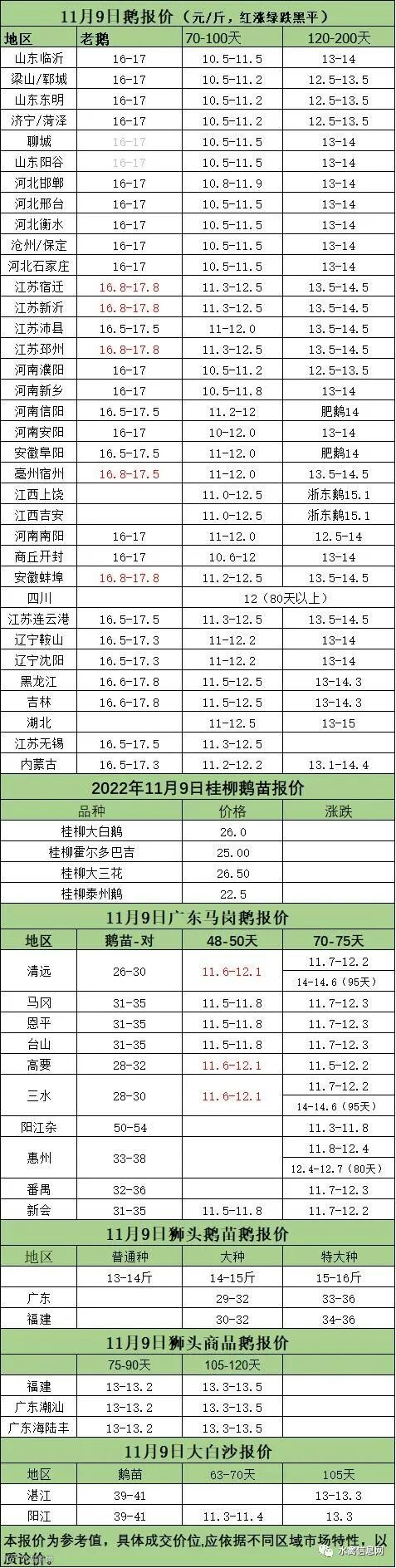 2022年11月09日各品种鹅苗价格