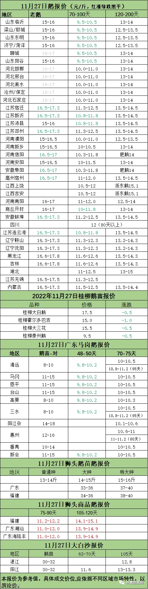2022年11月27日各品种鹅苗价格