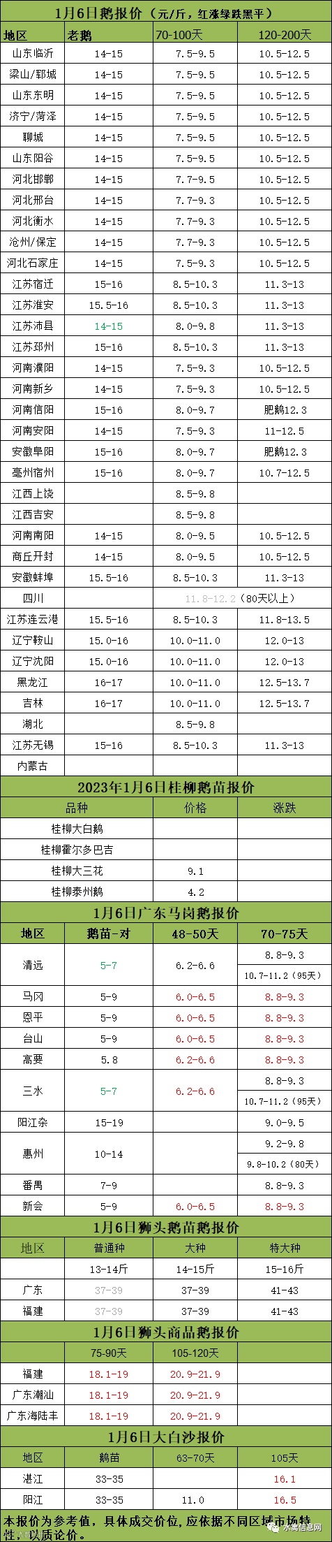 2023年1月06日鹅种蛋价格(元/枚)部分停报