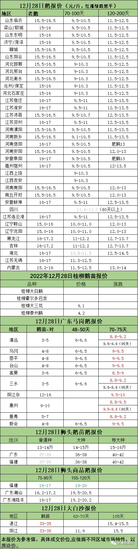 2022年12月28日鹅种蛋价格(元/枚)部分停报