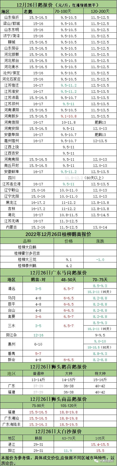 2022年12月26日各品种鹅苗价格