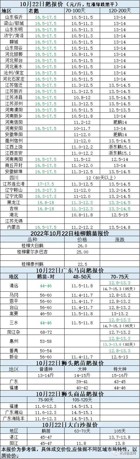 2022年10月22日各品种鹅苗价格