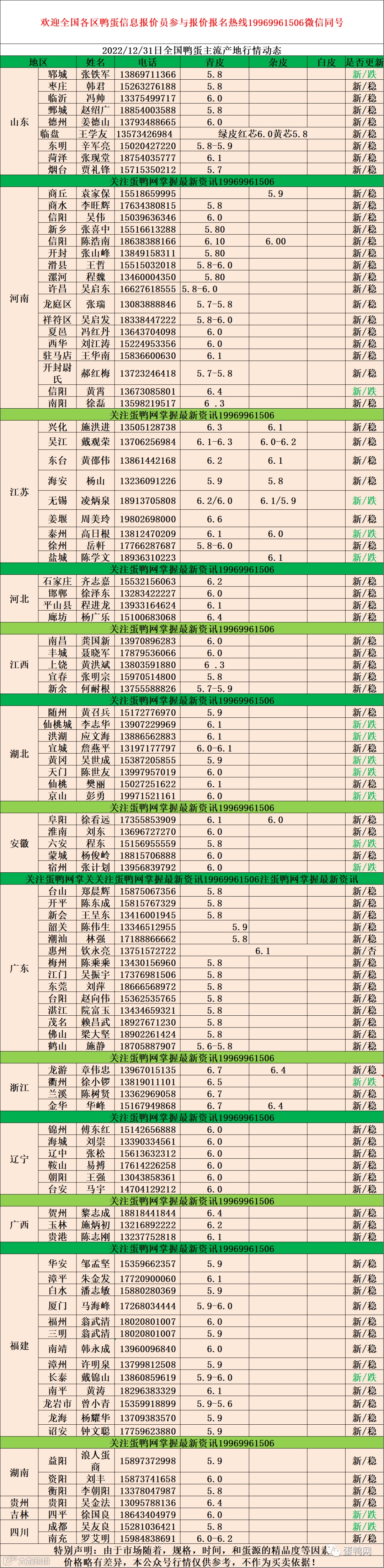 2022年12月31日:初产至10个头5.5元,10个头至9个头5.6元,9个头至8个头5.7元,8个头至7.5个头5.8,7.5个头至大蛋6.0元。