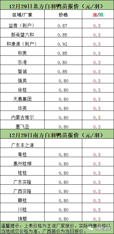 一、12月28日晚-12月29日白羽肉鸭报价;