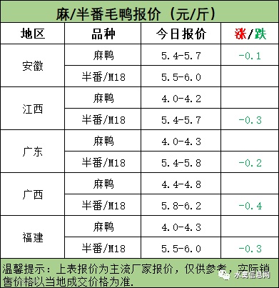 麻鸭苗报价弱稳;半番鸭苗报价平稳。