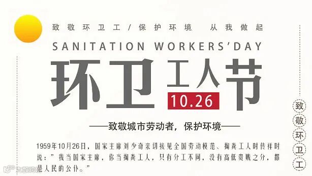 1987年,黑龙江省牡丹江市率先设立“环卫工人节”,日期就定在10月26日。这一创举在全国产生巨大的反响。