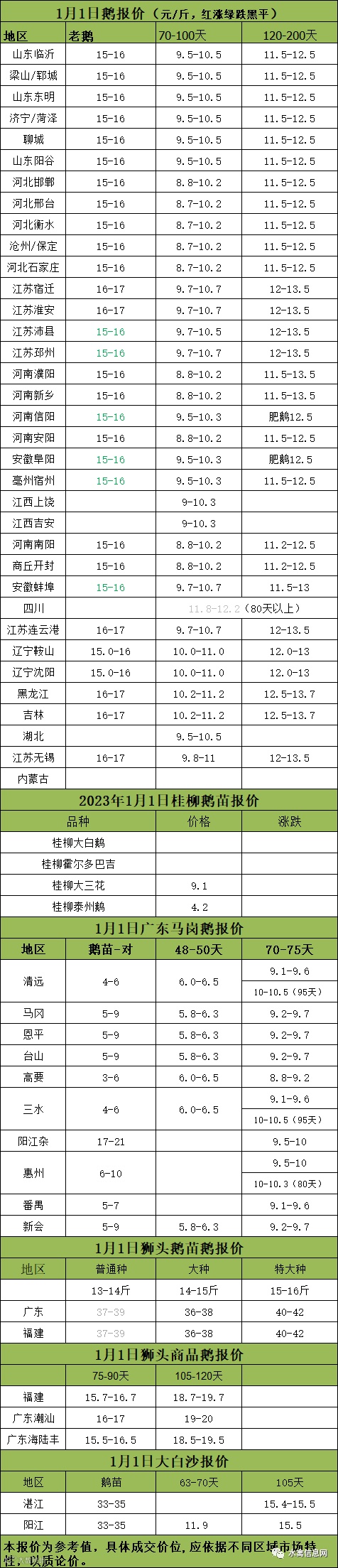 2023年1月01日各品种鹅苗价格