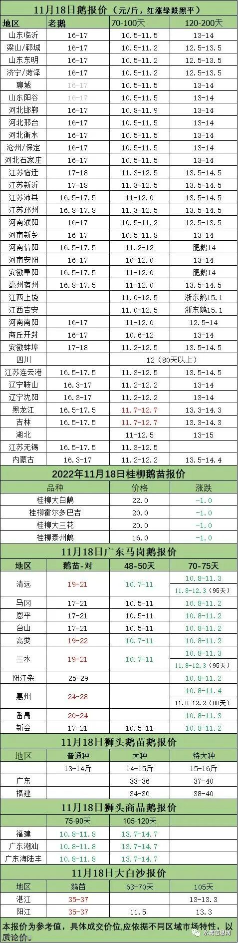 2022年11月18日鹅种蛋价格(元/枚)部分停报